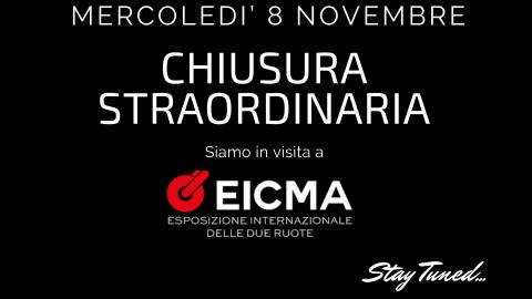 Mercoledì 8 novembre il negozio sarà chiuso per una visita di tutto il team di INTERmoto a ElCMA, il Salone Internazionale delle Due Ruote a Milano, la rassegna espositiva di riferimento mondiale per le due ruote a motore.