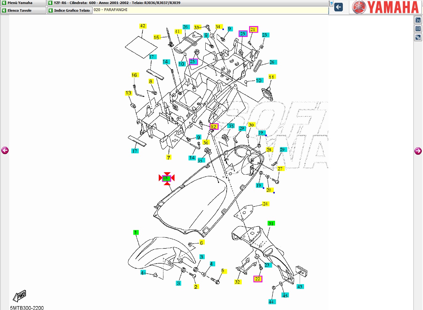Parafango posteriore sottocodone rosso Yamaha R6 2001-2002